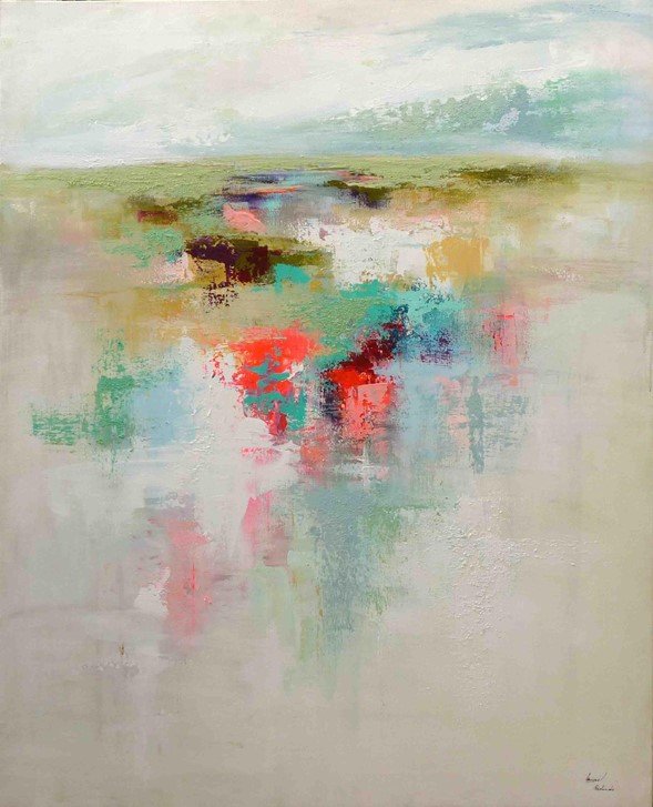 Esta colección es quizás la serie a la que mayor parte de mi tiempo he dedicado y también la que más repartida se encuentra. Al igual que «Esencias», se centra en la descomposición del paisaje. Es esta fragmentación de los primeros o medios planos, como interactúan esos colores en entre ellos y en nosotros, lo que encauza mi investigación. Por eso aquí, el motivo se pierde a veces reduciéndose tan solo al horizonte. Mares, marismas … no importa, tan solo es un punto de conexión con la realidad. Una referencia al punto de partida. Luego es el color y la mancha los que cuentan como lo siento.