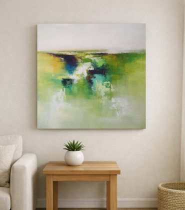 En estas obras, trabajo con acrílico y collage para construir cuadros abstractos inspirados en la naturaleza, donde reconocemos la atmósfera de Huelva sin necesidad de una descripción literal. Son piezas que hablan de humedad, calma y profundidad, pensadas para mirarse con tiempo.